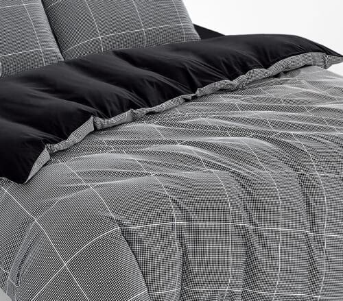 מערכת מצעים יוקרתית עשויה 100% בד אל קמט בדוגמת משבצות קטנות.