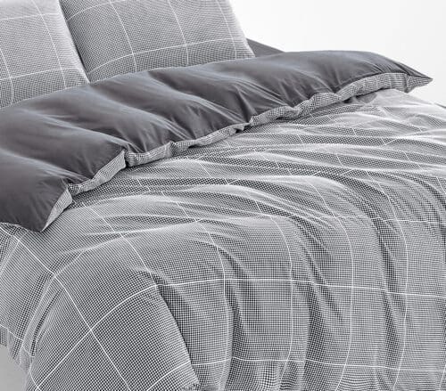 מערכת מצעים יוקרתית עשויה 100% בד אל קמט בדוגמת משבצות קטנות.