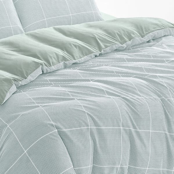 מערכת מצעים יוקרתית עשויה 100% בד אל קמט בדוגמת משבצות קטנות.